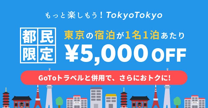 5 hours agoこの記事に関する別の画像を見る もっとTokyoとただいま東京プラスの助成を併用する場合はもっとTokyoの1泊5000円引きを.
